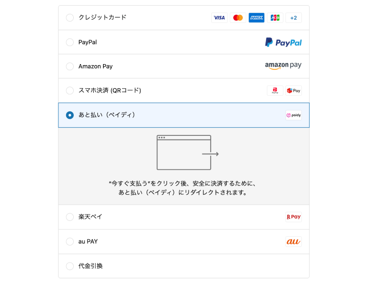 【あと払い(ペイディ)】を選択し[今すぐ支払う]ボタンをタップしてください。