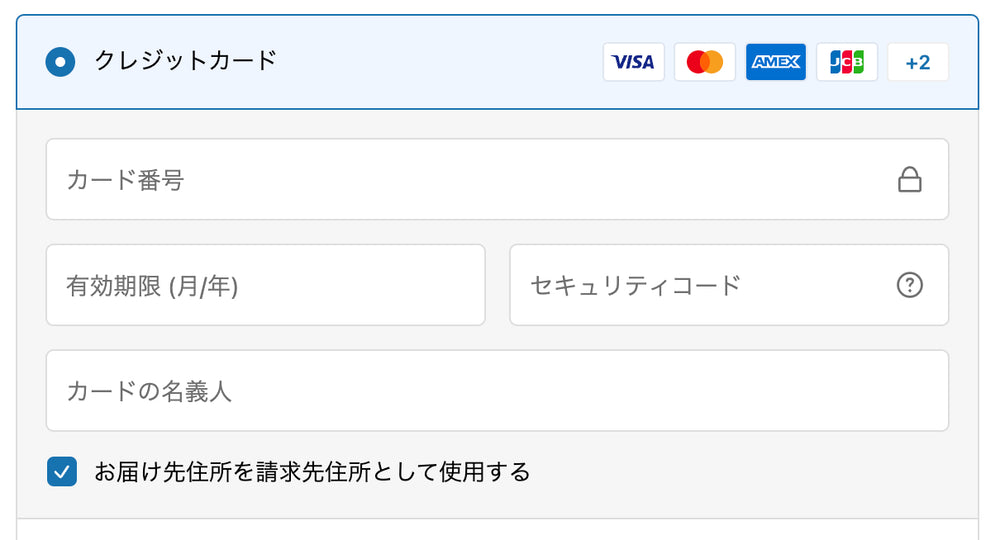 - セキュリティコード※CVV(カード裏面にある3桁のセキュリティコードです。 American Expressカードは前面にある4桁のコードです。)
